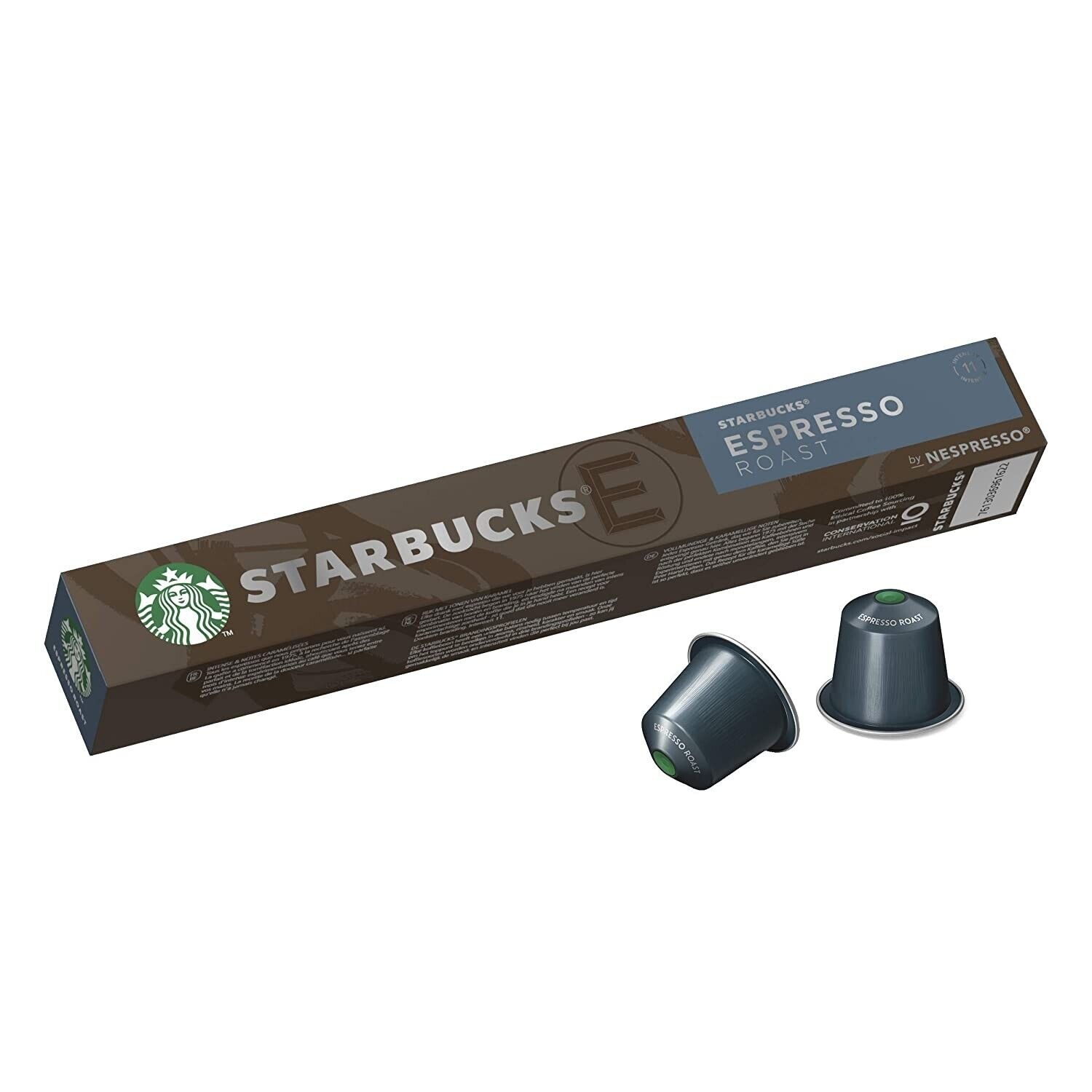 - Compatibele capsulekoffie voor NESPRESSO koffiemachines. 10 koffiecapsules per pod, intensiteitsniveau 11 Elke capsule bevat koffie voor een espresso of ristretto.